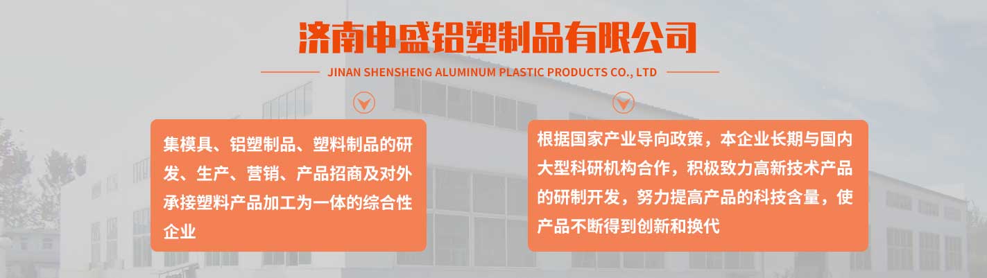 濟南申盛鋁塑制品有限公司,座落在濟南市長清區(qū)工業(yè)園,占地十余畝。是一家集模具、鋁塑制品、塑料制品的研發(fā)、生產(chǎn)加工、營銷、產(chǎn)品招商、對外承接塑料產(chǎn)品加工為一體的綜合性企業(yè)。根據(jù)國家產(chǎn)業(yè)導(dǎo)向政策,本企業(yè)長期與國內(nèi)大型科研機構(gòu)合作,積極致力高新技術(shù)產(chǎn)品的研制開發(fā),努力提高產(chǎn)品的科技含量,使產(chǎn)品不斷得到創(chuàng)新和更新?lián)Q代,市場銷量走在同行業(yè)的前列。